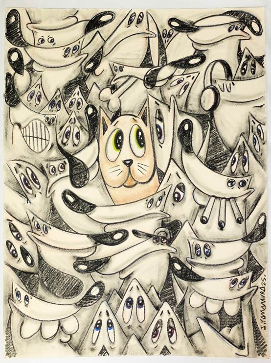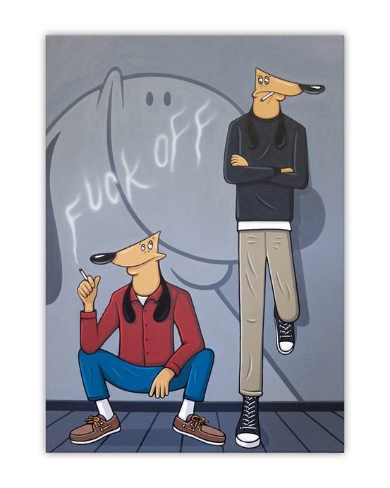 藝廊奇想會(Whimsy Works Gallery) 全新展覽由法國出生、現居東京的當代藝術家 Jeremy Yamamura 帶來台灣首次個展《DAWGZ》。展覽以他自 2000 年代初期延伸至今的角色創作為核心,透過油畫、素描、再製黑膠封面與立體作品等多種形式,串連起 DAWGZ 系列從塗鴉場景萌發,到在街頭文化、影像語彙與手繪線條之間持續轉化的軌跡,呈現角色在不同媒材中生長、變形與再造的方式。