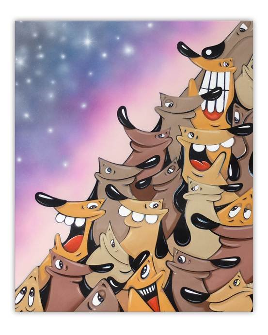 多年來,他的展覽遍及日本與海外,包括東京銀座六蔦屋書店、紐約 The Fridge、首爾 Soft Corner、英國諾里奇 Bluey Bluey,近期亦登上巴黎 Le Salon Sothebys;此外,他也參與 4bysix charity auction、Japan Walls 等跨界藝術活動,並與 MUJI、Converse、Manhattan Portage、Sesame Street 等品牌合作,使 DAWGZ 的語彙被延伸到不同領域。